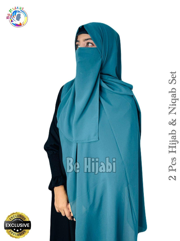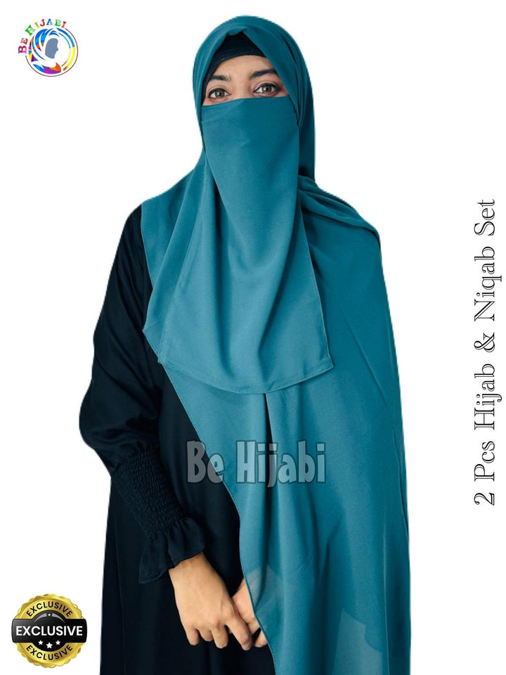 2 Pcs Hijab & Niqab Set Color Bottle Green