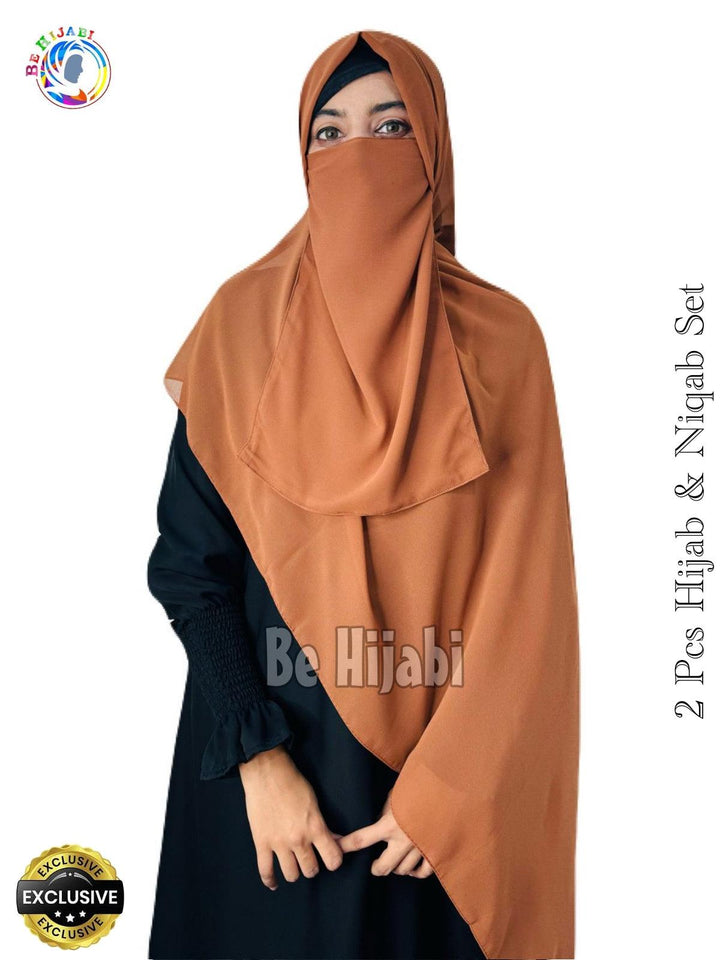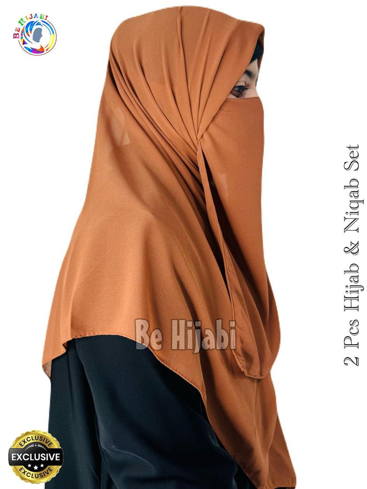 2 Pcs Hijab & Niqab Set Color Cocoa Brown