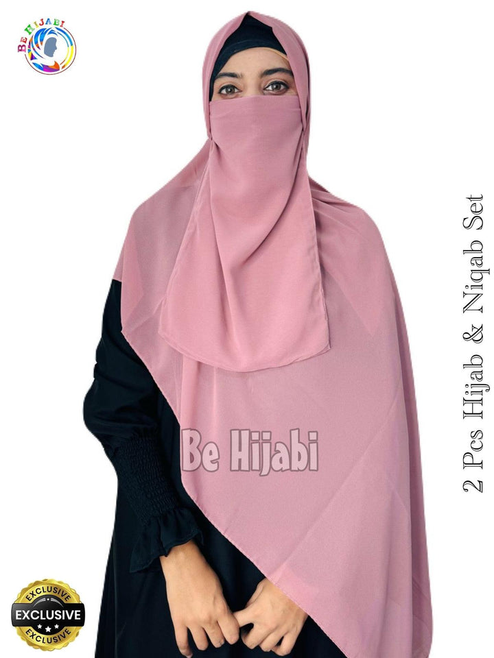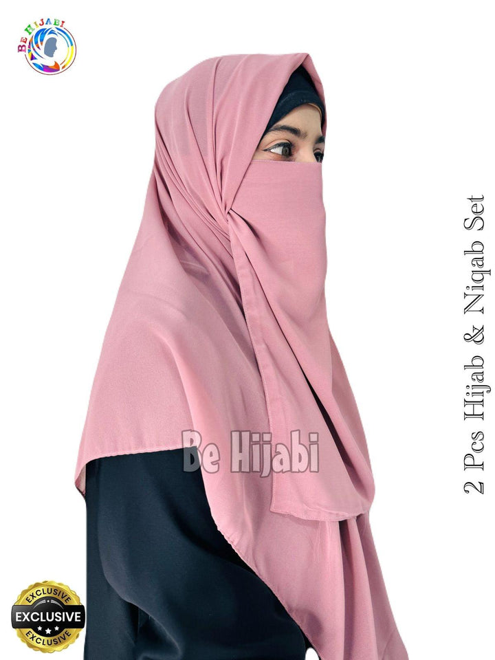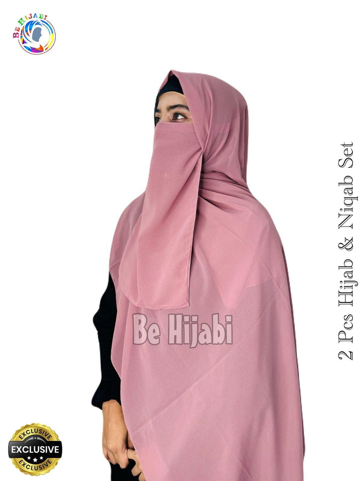 2 Pcs Hijab & Niqab Set Color Coffee Pink