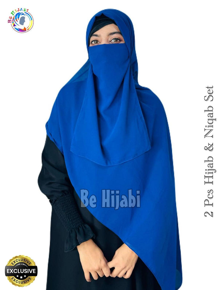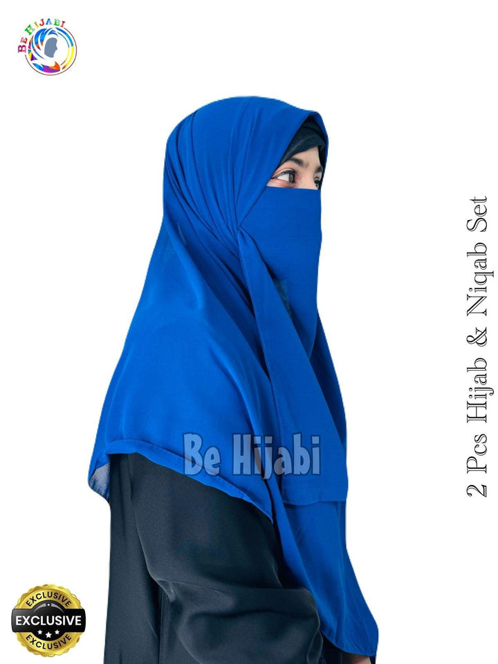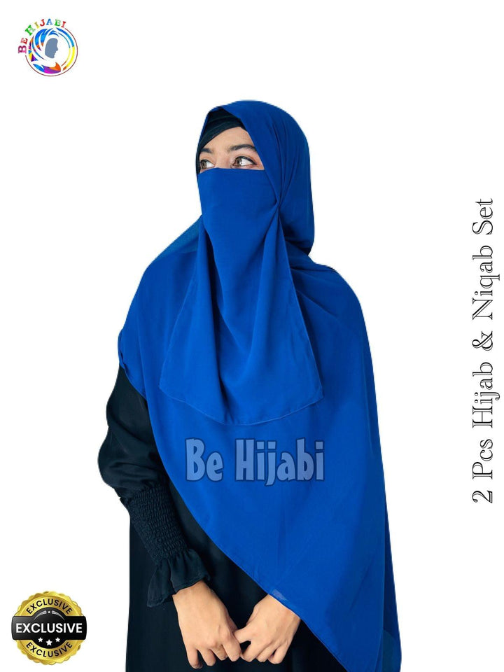 2 Pcs Hijab & Niqab Set Color Royal Blue