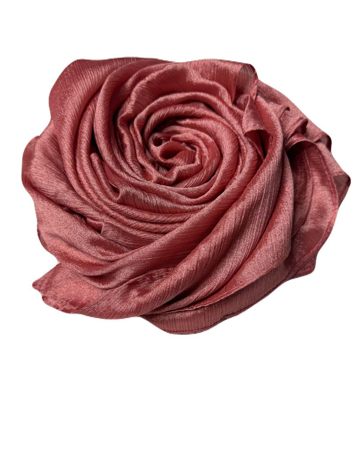 "Shimmer Silk Hijab" evokes an image of a hijab crafted from luxurious silk fabric with a shimmering finish. Silk is renowned for its smooth texture, elegant drape, and natural sheen, while the term "shimmer" suggests an added touch of sparkle or gloss, perhaps achieved through subtle metallic threads or a special weaving technique. This hijab likely offers a sophisticated and glamorous look, suitable for formal events or occasions where a touch of elegance is desired. The combination of silk's premium quality and shimmering effect makes the Shimmer Silk Hijab a stylish choice for those looking to add a touch of luxury to their outfit while adhering to modest dress standards.