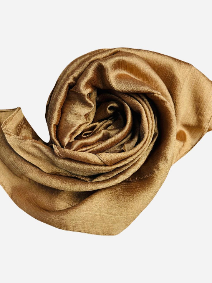 "Shimmer Silk Hijab" evokes an image of a hijab crafted from luxurious silk fabric with a shimmering finish. Silk is renowned for its smooth texture, elegant drape, and natural sheen, while the term "shimmer" suggests an added touch of sparkle or gloss, perhaps achieved through subtle metallic threads or a special weaving technique. This hijab likely offers a sophisticated and glamorous look, suitable for formal events or occasions where a touch of elegance is desired. The combination of silk's premium quality and shimmering effect makes the Shimmer Silk Hijab a stylish choice for those looking to add a touch of luxury to their outfit while adhering to modest dress standards.