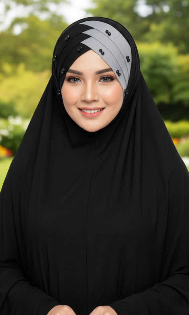 Double Color Pearl Turkish Hijab Cotton jersey Color Black & Gray