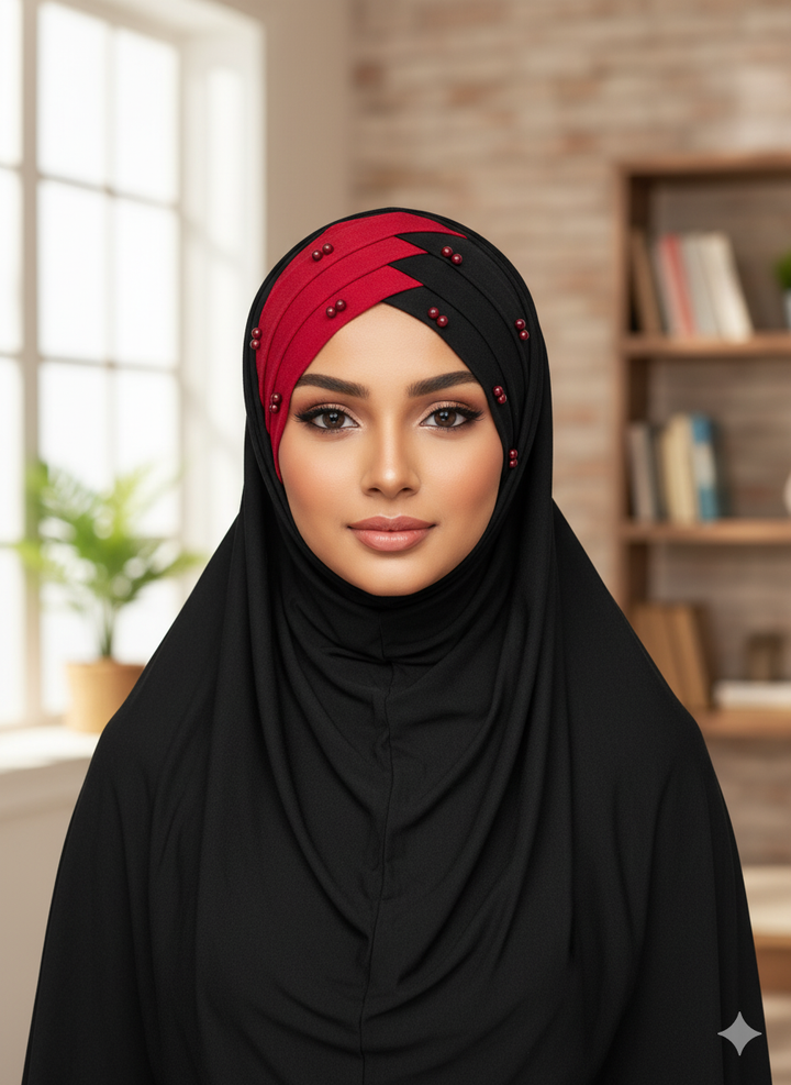 Double Color Pearl Turkish Hijab Cotton jersey Color Black & Red B1