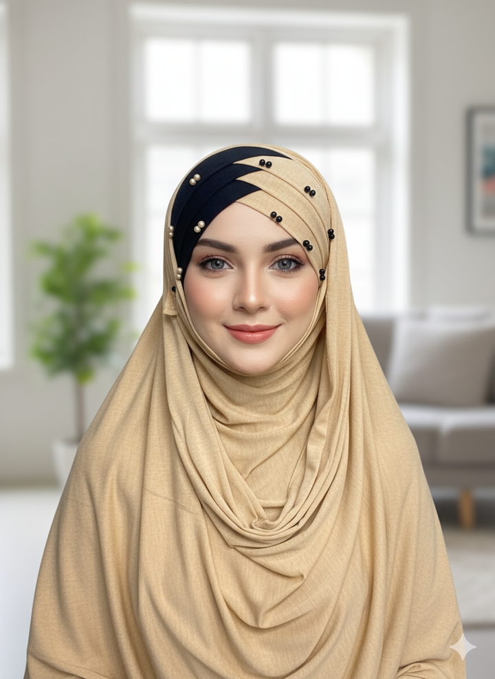 Double Color Pearl Turkish Hijab Cotton jersey Color Black & Skin