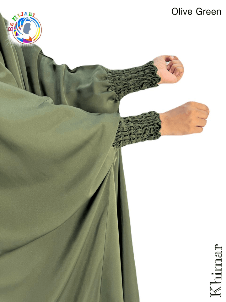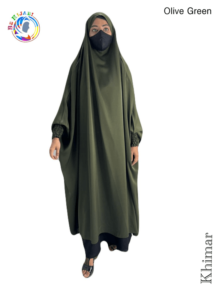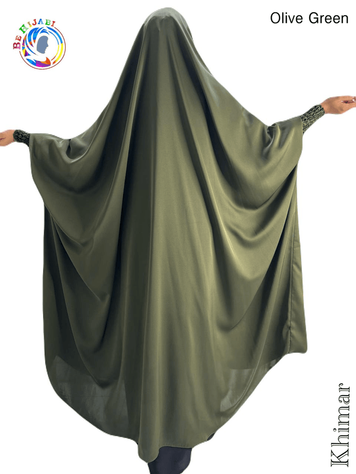 The khimar is a traditional Islamic garment worn by Muslim women for modesty purposes. It is a loose-fitting outer garment that covers the head, hair, neck, and shoulders, extending down to varying lengths, often reaching to the waist or beyond. The khimar is usually worn over regular clothing and can come in various styles, colors, and materials to suit different cultural preferences and personal tastes. It is a symbol of religious identity and modesty, serving as a means for Muslim women to adhere to Islamic dress guidelines while expressing their individuality and cultural heritage.
