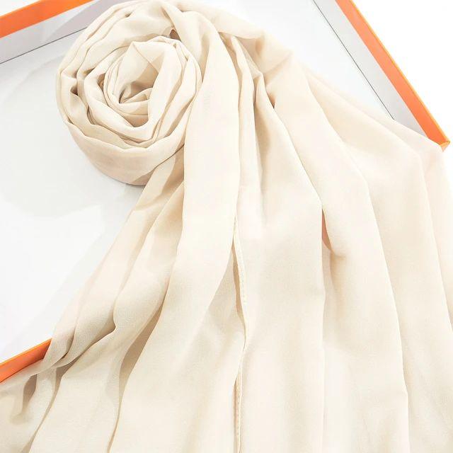 Plain Georgette chiffon scarves are a versatile and elegant accessory. Made from lightweight, sheer fabric, these scarves are known for their smooth drape and soft feel. They come in a variety of colors, making them easy to match with different outfits. Perfect for adding a touch of sophistication or for layering in any season.