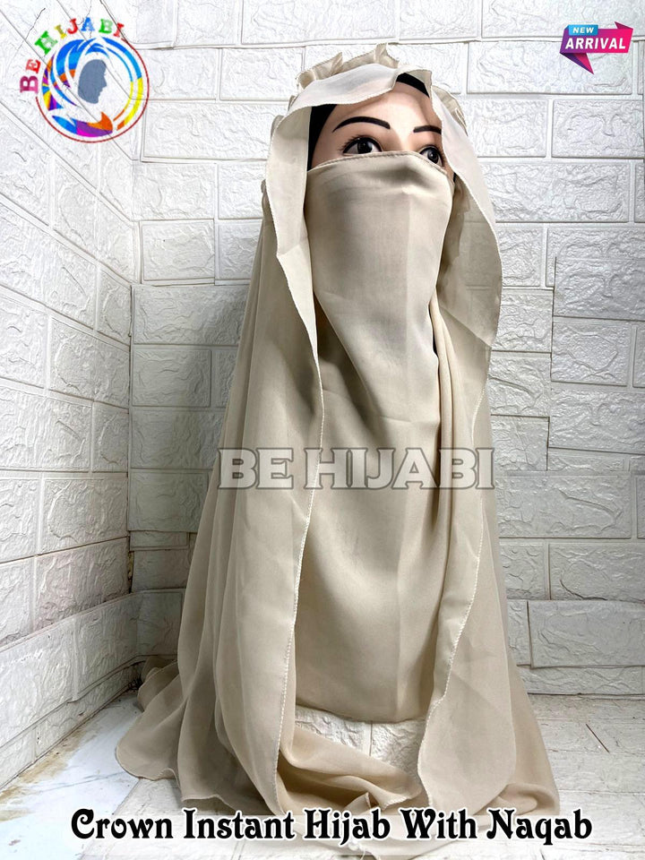 Crown Hijab Look beautiful and elegant with the Princess Hijab. Material: High Quality Chiffon Pieces: Hijab + Niqab Style: Ready to Wear Size: Free Size