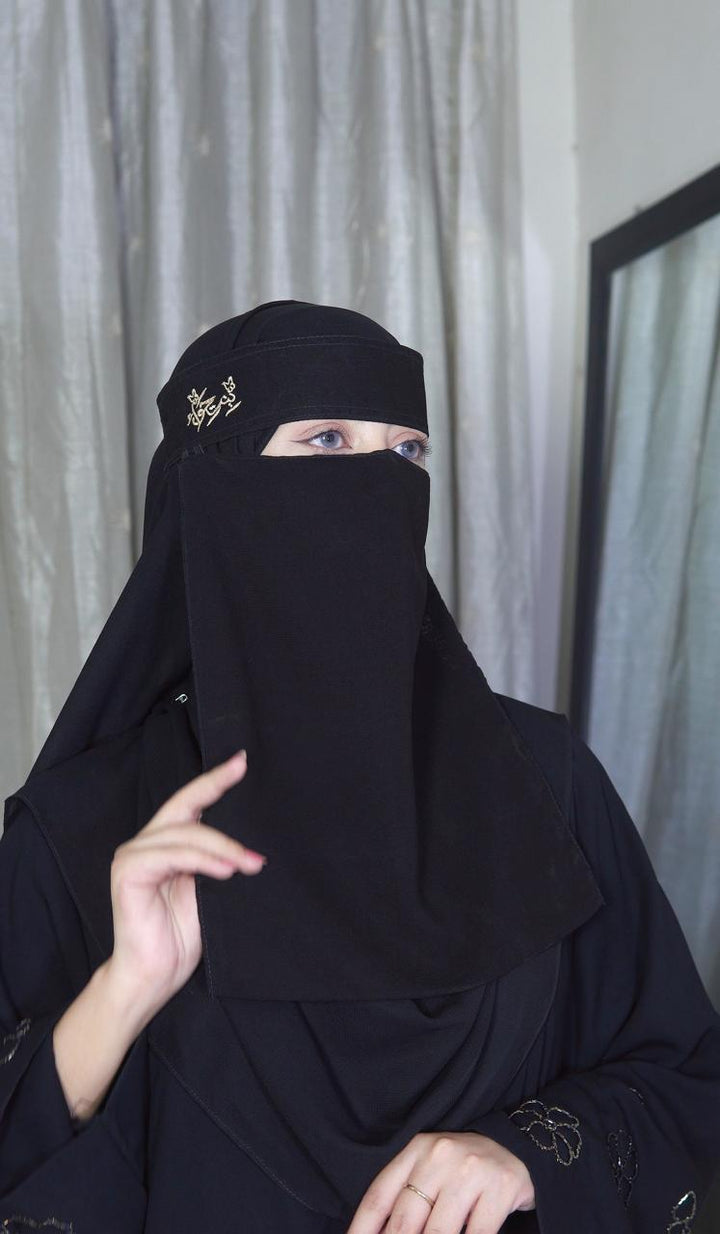Description: Fabric: Formal Chiffon Length: approx. 14 inchesSaudi Embroidered Arabic Niqab - Bint-e-Hawa