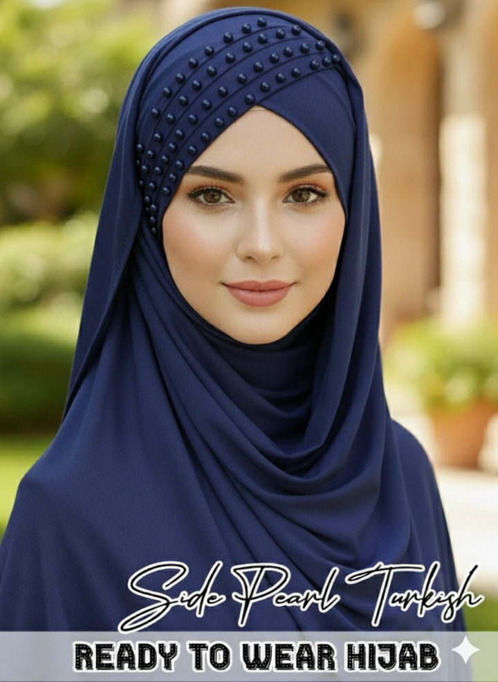 Side Pearl Turkish Hijab Cotton jersey Color Navy Blue
