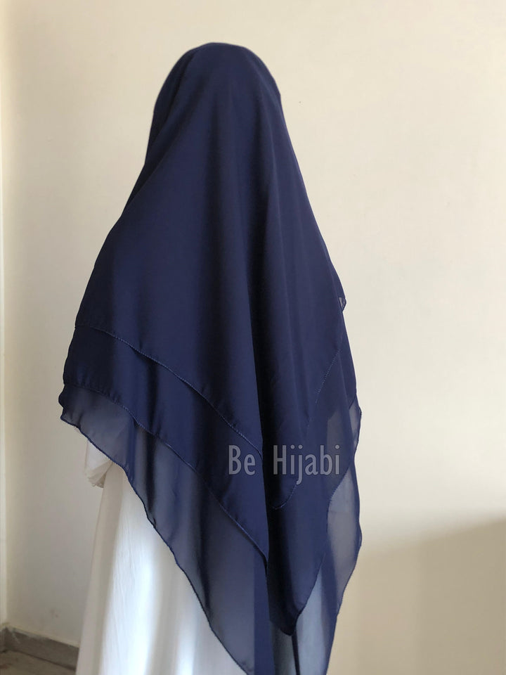 Three Layers Chiffon Khimar Color Navy Blue